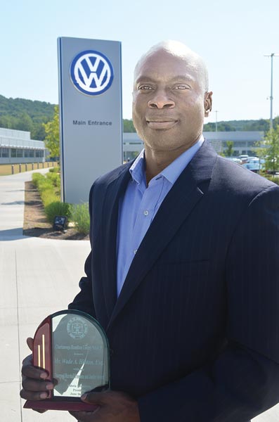 The Chattanooga-Hamilton County Chapter of the National Association for the Advancement of Colored People during its 5th annual Criminal Justice Seminar on June 16 awarded Volkswagen attorney Wade Hinton the 2nd annual Thurgood Marshall Freedom of Justice Advocate of the Year award. The organization chose based its choice of Hinton as the recipient of the award on his work in civil rights and his committement to volunteer work in the community, calling him “one of Chattanooga’s most worthy freedom fighters.” Humbled, Hinton said, “The NAACP does a lot of good work. If it weren’t for groups like it, I wouldn’t have had the opportunities I’ve had as a person of color. There are a lot of folks out there, including women, who have had groups fighting on their behalf for a long time, so I don’t take it lightly when a group like the NAACP, with its history and legacy, recognizes me.” (Photo by David Laprad)