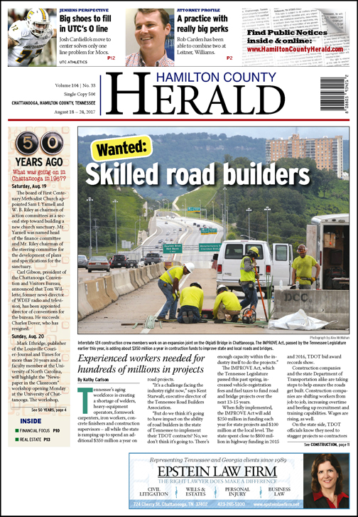 “What you’re hitting on is really a national issue with regard to skilled labor, (such as) welders, carpenters,” explains Will Reid, assistant chief engineer with the Tennessee Department of Transportation. … “There aren’t as many of those folks out there” as there used to be.