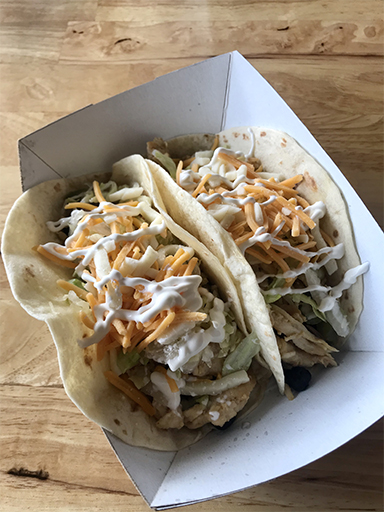 I didn’t even look at the menu; I just stepped up to the counter and said, “Two chicken tacos, please.”