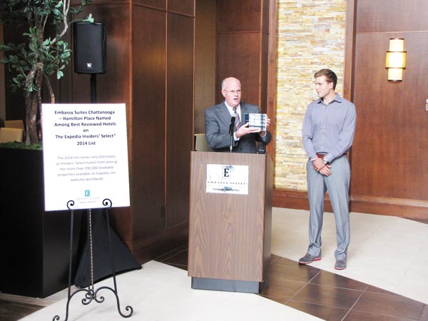 Embassy Suites Chattanooga–Hamilton Place has been named number 152 in the world and 63 in the United States on the Expedia Insiders’ Select list for 2014, an annual ranking of the best reviewed hotels.