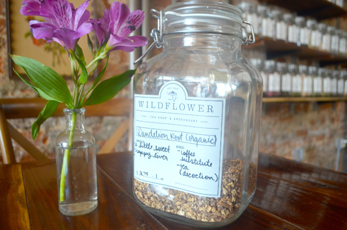 As a physical space, Wildflower Tea Shop expresses the old world sensibilities of the apothecary. Even the cups themselves are unassuming. Hand-made at Annie Hanks Ceramic Studio on Main Street, the unadorned mugs warm instantly when filled with hot tea, and hold the heat of the liquid long after a normal tea cup would allow it to cool.