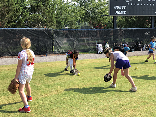 “She was saying, ‘It’s going to be hot, but it will be so much fun,’” says Morgan Anderson as she watched her daughter fielding balls. “Just the chance to play with some of these girls who went to the Women’s College World Series and are so great is amazing. It’s huge for her to see other women do what she wants to do. Her goal is to play D1.”