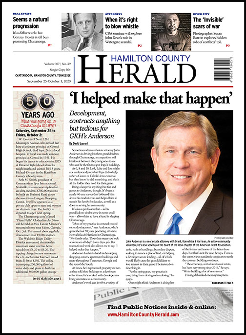 Sometimes when real estate attorney John Anderson is driving his three grandchildren through Chattanooga, a competition will break out between the young ones to see who can be the first to spot Papa’s buildings.