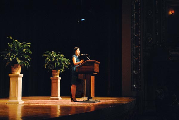 Rhee began her lecture, titled “Putting Students First in Public Education Reform,” with the story of her role as chancellor of the D.C. schools and statistics from her time there. During that time, there was a 70 percent gap between black and white children in D.C. The children would come in to the schools on par with urban counterparts, but as time went on, the gap got progressively worse. By fourth grade, these students were already two grade levels behind. Rhee asked herself where to start in fixing this system. She first wanted to figure out where the money was going. At first, she thought the $18,000 on transportation of kids was an element to cut, but digging deeper found that the real cost was coming from lawsuits and private school tuition for children who did not have their individual education plans met by the schools they were attending. The woman in charge of making sure the plans were met had the excuse that she was a busy person and things naturally fall through the cracks.