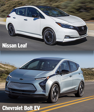 Thankfully, there are lower-priced EVs on the market, and two compelling picks are the Nissan Leaf and Chevrolet Bolt EV.