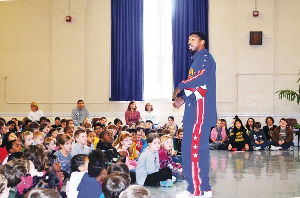 Harlem Globetrotters star Buckets Blakes brought the “ABCs of Bullying Prevention” program to Chattanooga School for the Liberal Arts on Friday, Jan. 10. The program focuses on Action, Bravery, and Compassion. It was designed in coordination with the National Campaign to Stop Violence and covers three key ways kids can reduce bullying among their community. Buckets used the team’s signature ball handling skills and humor during a well-balanced program that informed and entertained. Over 400 kids attended. The Globetrotters were in town to bring their “2014 Fans Rule World Tour” to UTC McKenzie Arena on Wednesday, Jan. 15.