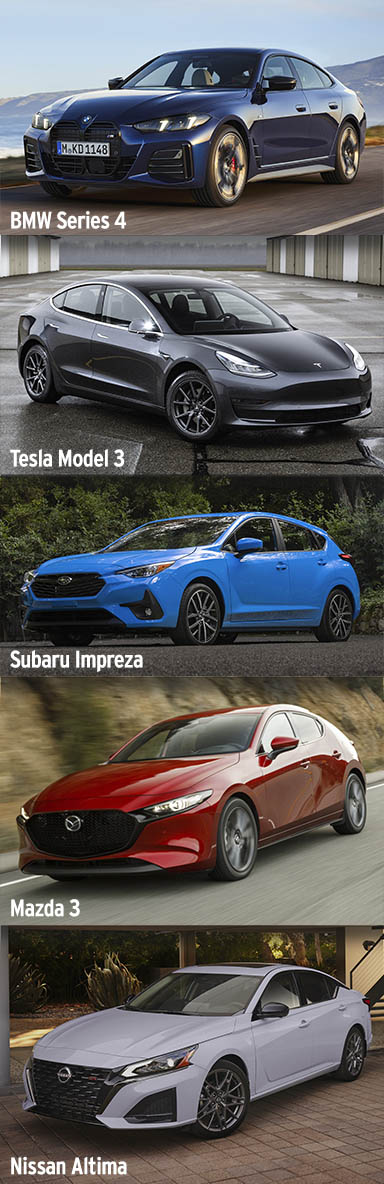 The Mazda 3 is an overachiever inside with premium materials that verge into luxury territory. It’s also one of the most fun-to-drive cars in its class and its stunning good looks are hard to ignore. But it’s smaller inside than many competitors.
