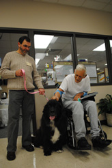 a shaggy black-coated New-foundland breed, who is brought to Siskin and T.C. Thompson once a month by owners and therapy volunteers Rick and Sandy Hall. In addition to standard obedience skills, Molly has been trained for water rescue and drafting, in which she pulls a cart through a series of obstacles. Through this, she has developed good command skills and was better prepared for the testing required to become a therapy dog.