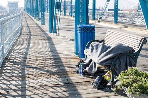 Chronic homelessness is associated with sharply elevated health and safety risks. People experiencing homelessness face mortality rates 60% higher than those living in poverty but housed, with average ages of death between 41 and 51. Rates of violent victimization and traumatic brain injury are also substantially higher among the unhoused population.