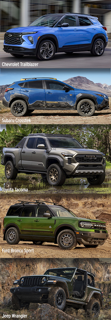 The Jeep Wrangler is the best option on our list for maximum off-road capability. But Edmunds has found the other vehicles to be respectably capable while being versatile and enjoyable to drive every day.