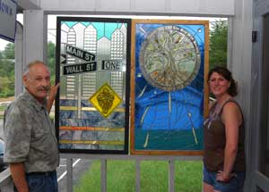 Zakas points to an unassembled stained glass eagle on the worktable that will soon be hung at the American Eagle Inn in Monteagle. Beside it sits another piece bearing the name of the inn, which is the perfect example of the unique variety of things Zakas and Kyle do with stained glass.