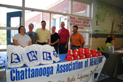 During the Latino Fair at East Side Elementary school, the Chattanooga Association of Realtors was on hand to encourage individuals to sign up for smoke alarms to be delivered and installed in their homes. This effort was a huge success, with 75 families or individuals signing up for the service. To encourage fair goers to visit their booth, the CAR was also distributing goodie bags filled with fire safety tips, coloring books, reasons why to use a Realtor and fire chief hats for children. The smoke alarms will be installed during two weekends in October. Also at the Latino fair were booths on disease prevention, the Readmobile and free spinal screenings, vision tests, dental checkups and HIV/AIDs testing.