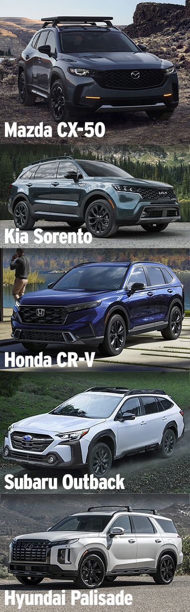 The Subaru Outback is ideal for SUV shoppers who want a vehicle that’s suitable for occasional off-road adventures. Thanks to its standard all-wheel drive and generous ground clearance, the midsize Outback has above-average capability on dirt roads or rocky trails. The Outback’s wagon-like shape also makes it easier to load recreational gear or cargo on the roof.
