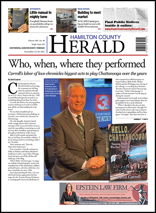 As Carroll hoists a copy of “Hello, Chattanooga,” he shares some of his favorite tidbits from its pages.
