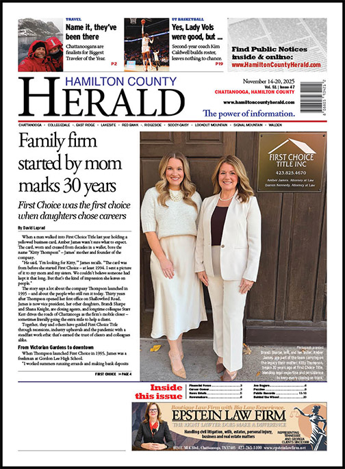 The story says a lot about the company Thompson launched in 1995 – and about the people who still run it today. Thirty years after Thompson opened her first office on Shallowford Road, James is now vice president, her other daughters, Brandi Sharpe and Shana Knight, are closing agents, and longtime colleague Starr Kerr drives the roads of Chattanooga as the firm’s mobile closer – sometimes literally going the extra mile to help a client.