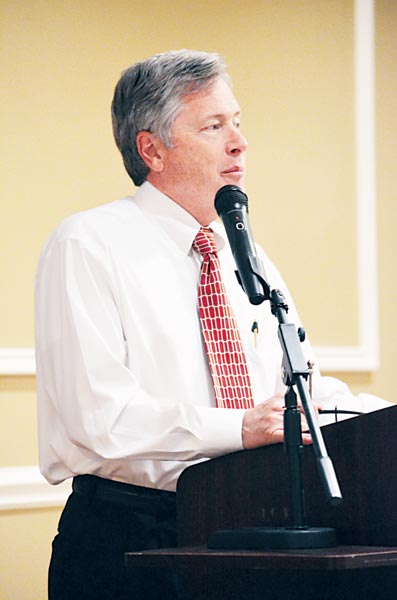 Chattanooga Chamber of Commerce President Ron Harr speaks with the local chapter of the Women's Council of Realtors Wednesday, November 7 at the Homebuilders Association of Greater Chattanooga. Harr spoke about the many ways in which the Chamber nurtures economic growth and said, "Chattanooga's best days are ahead of us." (David Laprad)