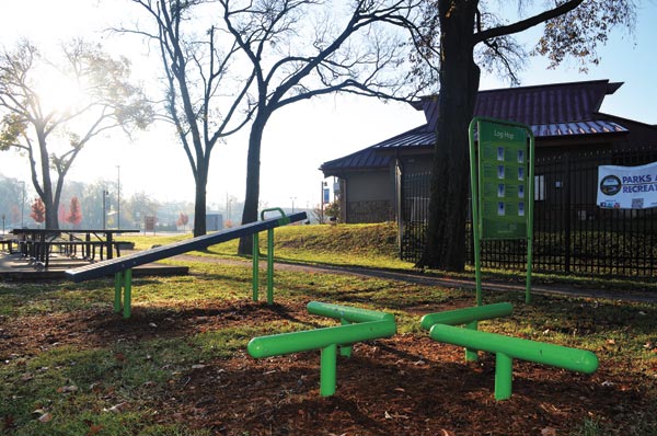 Fitness in Chattanooga is now even more fun with the grand opening of the Health Trail at Warner Park. The trail, which starts outside the Parks & Recreation Fitness Center and winds around the Chattanooga Zoo, features 15 workout stations to enjoy in the fresh air. Each station features unique equipment as well as a sign with pictures demonstrating how to perform certain exercises. Park outside the fitness center, look for the welcome sign near the picnic tables, then walk up, use and get fit for free! The support of the University of Tennessee at Chattanooga, Parks & Recreation and PlayCore made the availability of the fitness equipment possible. (Photo by David Laprad)