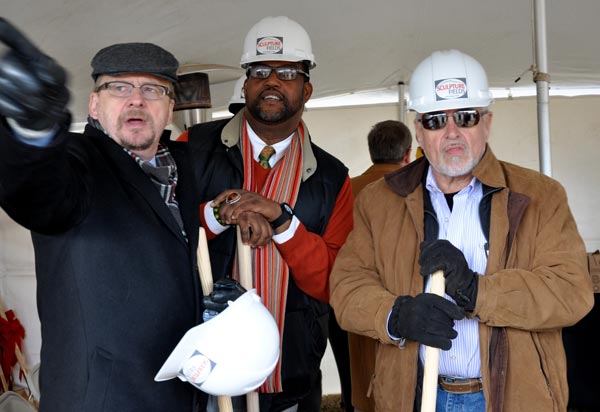 Board members, city leaders, and individuals from the art community last week broke today at Sculpture Fields at Montague Park, a 33-acre sculpture park that will contain larger-than-life monumental art.