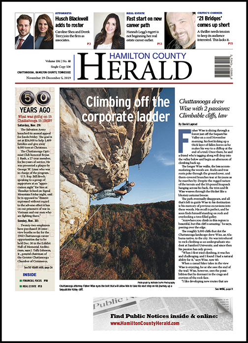 The roughly 3,000 cliffs that dot the Chattanooga landscape drew Wise, an Alabama native, to the city. He was introduced to rock climbing as an undergraduate student at Samford University, and since then his passion has only grown.