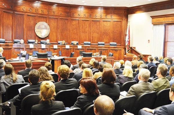 Attorneys, their families and sponsors, and the justices of the Tennessee Supreme Court gather at the County Commission Room in the Hamilton County Courthouse to swear-in attorneys to practice in the state. (Photos by David Laprad)