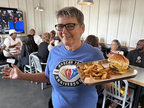 Yet there she was during a Monday lunch rush at her new venture, Scottie B’s Burgers and Beer on East Main Street, bringing plates to customers and refilling paper towel holders.