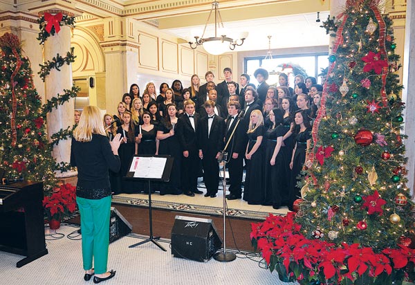 Christmas at the Courthouse returned to the historical Hamilton County Courthouse for 2013, allowing its performers to take advantage of the beautifully decorated century-old architecture and the pleasing acoustics under the dome. Each weekday day from December 2-13, choirs made up of local schools and other choruses sang holiday selections in honor of local elected officials. Here, students from East Hamilton High School, under the direction of Lucynda Holmes, perform for a number of local judges and court clerk personnel. More pictures on page 11. (David Laprad)