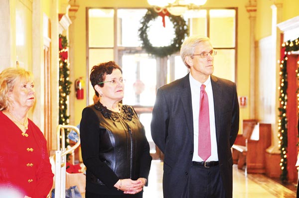 Circuit Court Judge Jackie Bolton and Circuit Court Judge Jeffrey Hollingsworth enjoy a performance by the East Hamilton High School Choir. (David Laprad)