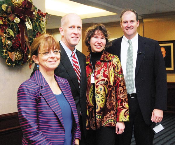 Miller & Martin attorney John Bode presented his annual Labor and Employment Law Update seminar Thursday, December 6 in the J. Guy Beatty, Jr., Conference Center in the Volunteer Building. The four speakers at the seminar included (L-R): Rosemarie Hill of Chambliss, Bahner & Stophel; John Bode and Stacie Caraway of Miller & Martin; and Justin Gilbert of Gilbert, Russell & McWherter. Not pictured: Hon. Curtis L. Collier, U.S. District Court, Eastern Division judge. Additional photo on page 7. (Susanne Reed)