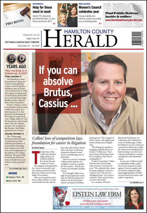 These shows, along with the movie “A Few Good Men” and his experience defending Brutus and Cassius in a mock trial, had a formative impact on Collins. By the time he moved to Knoxville to begin his undergraduate studies at the University of Tennessee, he was eyeing a career in the law.