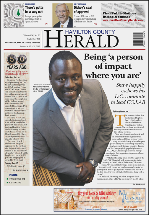 The first African-American to lead CO.LAB since its inception in 2010, Shaw hopes to diversify the city’s entrepreneurial landscape. He points out that roughly 42 percent to 45 percent of the Chattanooga population is made up of underrepresented minorities.
