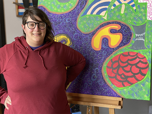 “If people want to construe a deeper meaning from my work, then they could certainly see different shapes as being representative of something that speaks to them,” she allows. “Any way anyone wants to interpret my paintings is both completely wrong and completely correct at the same time.”