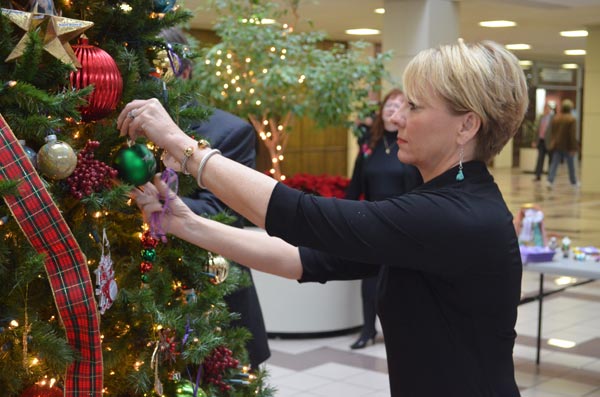 Hamilton County Mayor Jim Coppinger and The Partnership for Families, Children and Adults on Tuesday, December 3 at the Hamilton Country/Chattanooga Courts Building hosted “A Season of Remembrance,” a time to remember friends and loved ones whose lives have been disrupted by violent crimes such as domestic violence, child abuse, elder abuse, and homicide. “This is an opportunity to remember those we love,” said Regina McDevitt, director of crisis services at Partnership. “The ceremony not only brings attention to the prevalence and severity of these crimes but also calls for everyone in our communities to stop the violence.” The tree will remain in the Arboretum at the Courts building during the holiday season; community members may hang their own handmade or store bought ornaments in memory of those who have passed because of violent crime, or in honor of the survivors. Pictured: Judge Christie Mahn Sell hanging an ornament. (David Laprad)
