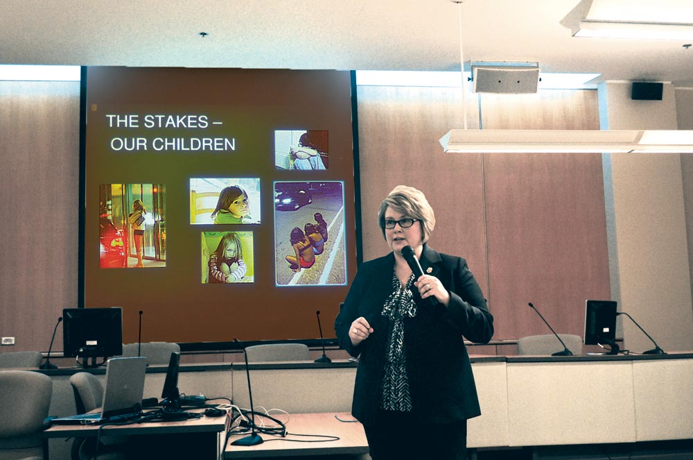 To dispel misinformation, Quin offered a simple definition of human trafficking: “Human trafficking is when a commercial sex act occurs and the victim is under 18 years of age,” she said. “There’s no such thing as child prostitution.”