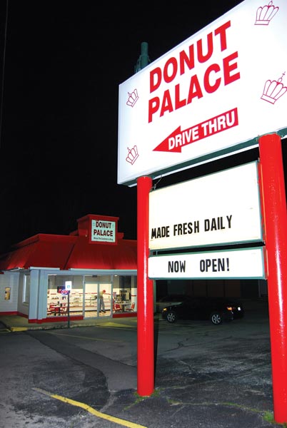 Since I work in downtown Chattanooga, and Donut Palace is located in Red Bank, I hit the road early, bypassed the Scenic City and stayed on US 27 North until I arrived at the Morrison Springs Road exit. Once off the interstate, a quick right turn put me on Dayton Boulevard, where the white neon glow of the Donut Palace sign illuminated a small parking lot and a free-standing building.