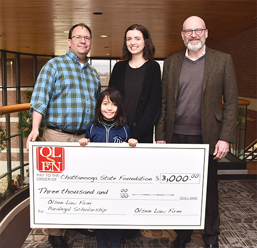 Olsen Law Firm has established a $3,000 paralegal scholarship with the Chattanooga State Foundation. The scholarship will assist with the development of paralegals in the Chattanooga area.