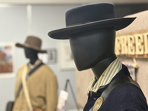 The origins of the two soldiers preceded the construction of Piney Woods by a century. Dressed in simple clothes (one wears denim slacks secured with a gold-colored belt buckle, a burlap shirt with buttons up the middle and what could pass as a White? Beaver Slouch Hat – a popular men’s hat during the Civil War), the two soldiers stand ramrod straight as they flank either side of a sign that reads “Gateway to Freedom.”