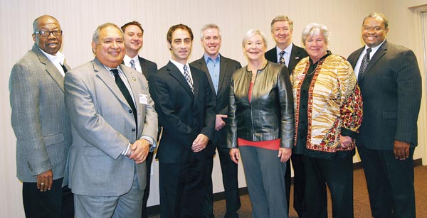 With the March 5 election looming, the Greater Chattanooga Association of Realtors during its quarterly GCAR Information Gathering session on Wednesday provided many of the candidates an opportunity to speak with members face-to-face. Taking the floor for a two-minutes each, incumbents, challengers and, for some districts, lone candidates made the most of their time by addressing the concerns Realtors typically have as they try to find their clients the right home: safety, security, the ability to buy a home, and more. Pictured L-R: District 8 challenger Moses Freeman; District 7 Councilman Manny Rico; District 4 challenger Ryan King; District 3 challenger Ken Smith; District 7 challenger Chris Anderson; District 6 Councilwoman Carol Berz; District 2 candidate Roger Tuder; District 3 Councilwoman Pam Ladd; and District 9 challenger Yusuf Hakkeem. (Photo by Susanne Reed)