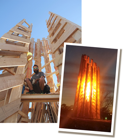 The event kicks off at noon. The light show will start at dark, and the sculpture will be ignited around 9:15 p.m. Sculpture Fields is at 1800 Polk St.