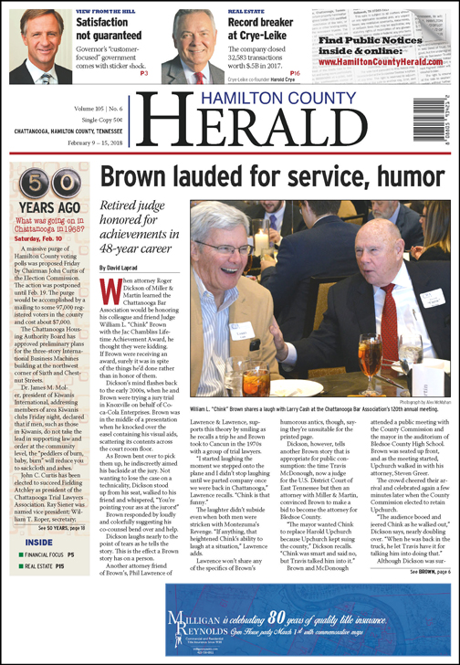 When attorney Roger Dickson of Miller & Martin learned the Chattanooga Bar Association would be honoring his colleague and friend Judge William L. “Chink” Brown with the Jac Chambliss Lifetime Achievement Award, he thought they were kidding. If Brown were receiving an award, surely it was in spite of the things he’d done rather than in honor of them.