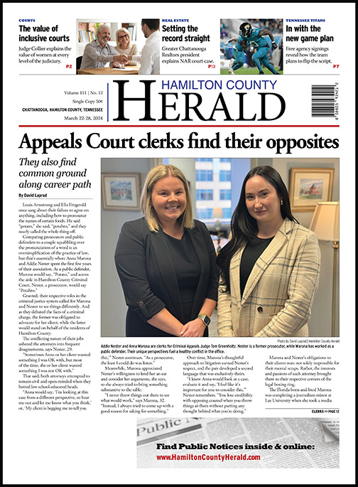 Comparing prosecutors and public defenders to a couple squabbling over the pronunciation of a word is an oversimplification of the practice of law, but that’s essentially where Anna Marona and Addie Nester spent the first few years of their association. As a public defender, Marona would say, “Potato,” and across the aisle in Hamilton County Criminal Court, Nester, a prosecutor, would say “Potahto.”