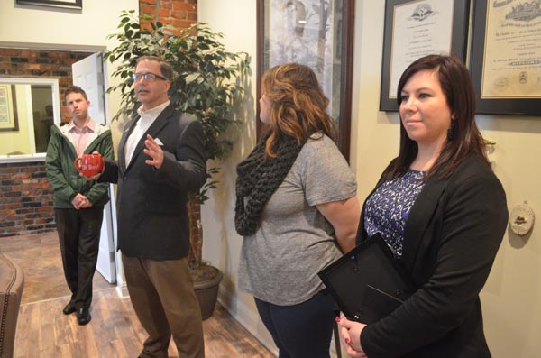 Robert Jeffrey Wolford says a few words after a Chamber of Commerce ribbon cutting ceremony celebrating the opening of his firm’s new office at 1700 McCallie Avenue. (He tells people he’s next to Wally’s so they know where to find him.) In addition to his legal practice, which involves a strong focus on debt collection, Wolford serves part-time in the Army National Guard. Working with Wolford is Megan England (not pictured), a criminal defense attorney. Wolford says he has room for one more lawyer in his newly renovated space. Contact the Wolford Firm at (423) 622-6461.