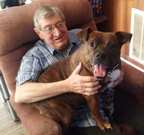 Once we had devised a way of keeping Amy’s three other dogs, Floyd quickly became a full-time resident on our living room couch and a constant companion of my dad, Ray. Now, I could begin describing my father as being 85 years old, but that would be painting the wrong picture. My dad is in no way elderly, as he works 20-30 a week at Publix and is on his feet up to eight hours a day and still drives himself to and from his job.