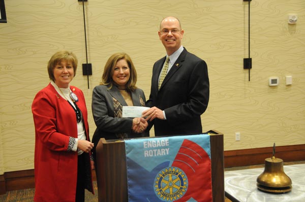 The Rotary Club of Chattanooga-Hamilton Place recently presented a check for four scholarships at $1,000 each per semester to Chattanooga State Technical Community College. Pictured are, l-r, Club President Cynthia Rhodes, Kevin Beirne with the club’s community services committee, Tammy Sawyers, Chattanooga State Foundation Director of Development, accepting the check on behalf of Chattanooga State Technical Community College. (David Laprad)