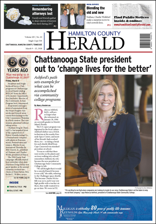 After nearly a decade at Pellissippi, Ashford was tapped last summer as Chattanooga State president. She is only the second woman to fill the position, after Dr. Flora Tydings, who is now chancellor of the Tennessee Board of Regents.