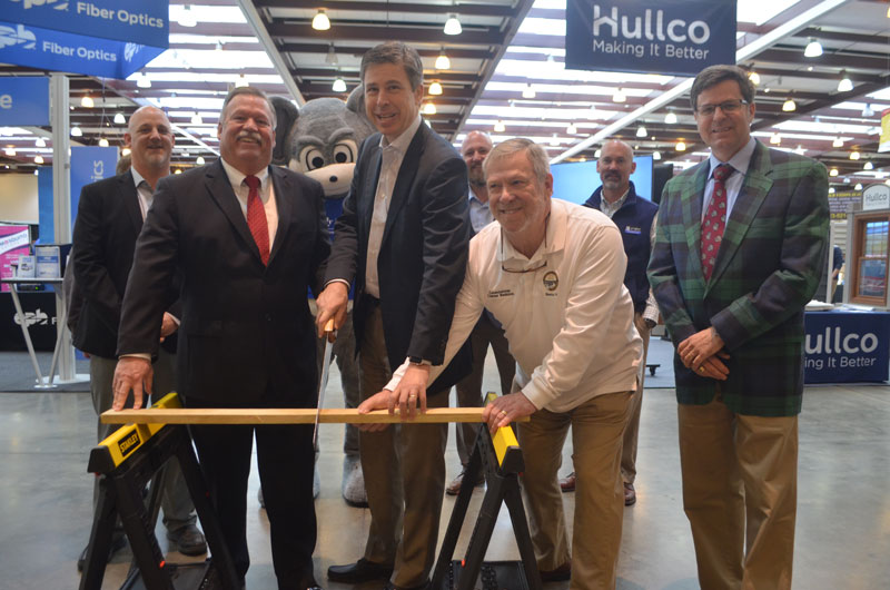 There were no flimsy ribbons on hand at the 52nd annual Tri-State Home Show, hosted March 2-4 at the Chattanooga Convention and Trade Center by the Home Builders Association of Greater Chattanooga, so Chattanooga Mayor Andy Berke (holding saw in photo above) had to put a little elbow grease into the opening ceremony. County Mayor Jim Coppinger, left of Berke, and Commissioner Chester Bankston, right of Berke, stood nearby, serving as supervisors on the job site.