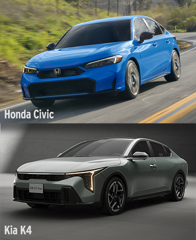 The Honda Civic is one of the most popular models on sale, and it faces new competition from the Kia K4, which replaces the previous Forte in that automaker’s lineup.