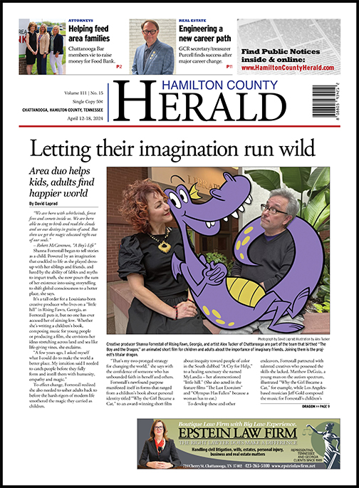 Chattanooga animator Alex Tucker, who also works as a clerk at East Ridge City Library, designed the characters and brought “The Boy and the Dragon” to vibrant life. Forrestall turned to Gold to provide the music, a bright but relaxing piano motif that helps to carry the story across all of its 99 seconds.