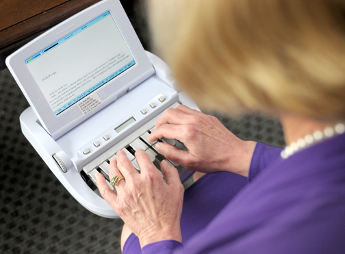 “Captioning is a different animal than court reporting,” Hershey explains. “We use the same machines, and we use the same theory of machine shorthand or stenography. A court reporter’s purpose is to preserve a verbatim record and produce a transcript. My purpose is communication access. I want to be as verbatim as I can be, but my goal is a verbatim transcript to facilitate communication with someone who is hard of hearing or deaf.”
