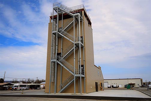 The 8,053-square-foot tower gives firefighters the most comprehensive training possible, says Hyman. The structure is 60 feet tall, 30 feet wide and 73 feet long. It has six stories and features multiple burn rooms. It’s designed for live fire, search and rescue, high-rise fire operations, technical rescue, hose deployment drills, fire attack, ventilation, aerial ladder training, forcible entry, firefighter rescue scenarios and other courses that mimic real emergencies.
