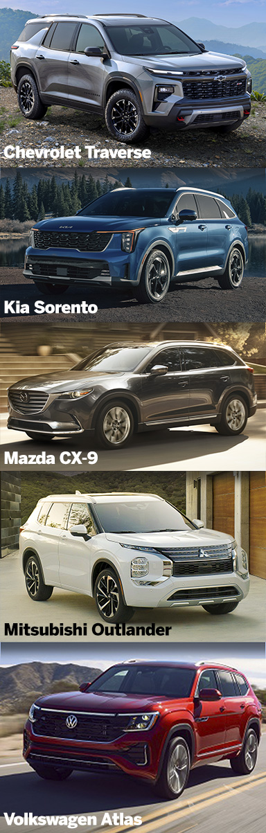 Acceleration is slow from the 181-horsepower four-cylinder, but you do get up to an EPA-estimated 27 mpg in combined driving. Edmunds noted the third row is small and best suited for children.